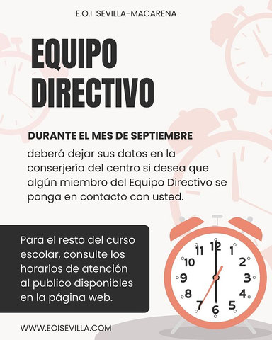 ENTRE EL 1 Y EL 10 DE JULIO, SÓLO HABRÁ CITAS PREVIAS DISPONIBLES PARA MATRÍCULA. PARA CUALQUIER CONSULTA, ENVÍEN UN CORREO ELECTRÓNICO A LA ADMINISTRACIÓN DEL CENTRO: 41008258.admin@g.educaand.es