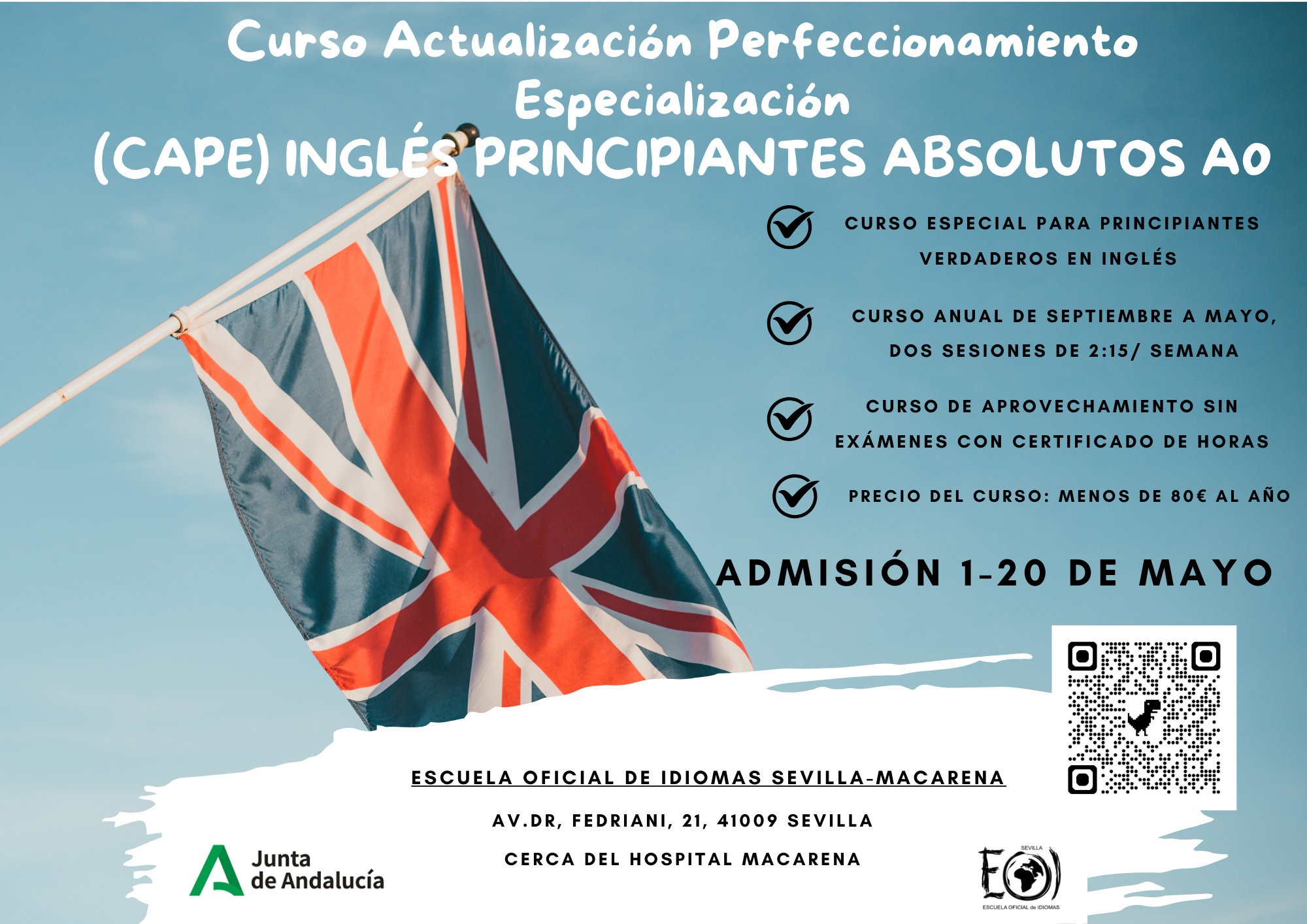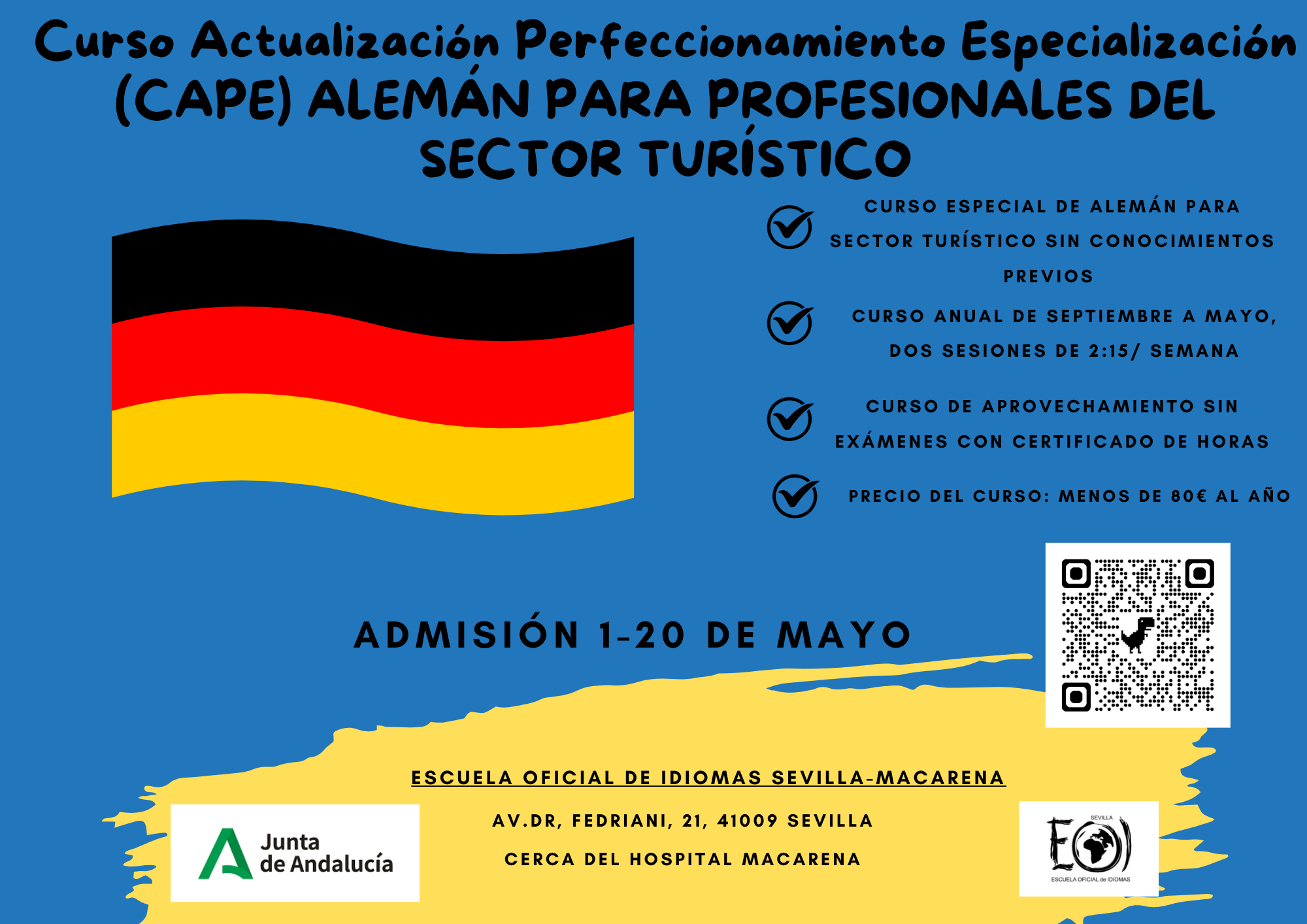 Para la preinscripción de los cursos de especialización ( CAPE Alemán para sector turístico, Inglés A0 y Actualización B2), pulse AQUÍ.