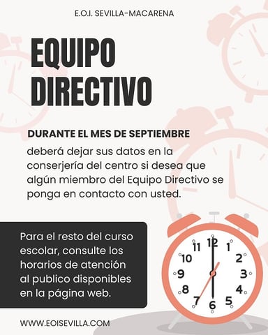 Lamentamos anunciar que estamos teniendo problemas de acceso a nuestro correo corporativo (41008258.admin@g.educaand.es), por lo tanto, habrá retrasos en la respuesta a los mensajes recibidos y en la asignación de grupo para alumnado matriculado en septiembre. Esperamos resolver la incidencia lo antes posible.