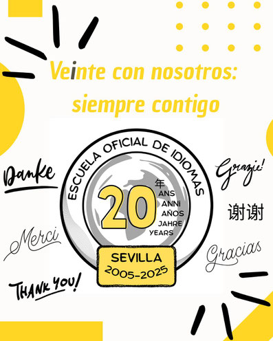 20º ANIVERSARIO EOI SEVILLA-MACARENA: Presentamos el lema y logo conmemorativos diseñados por Pedro Francisco García Ríos y Francisco Javier Hiraldo Cerquera, alumnos del centro.